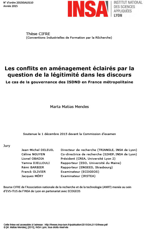 Les conflits en aménagement éclairés par la question de la légitimité dans les discours. Le cas de la gouvernance des ISDND en France Métropolitaine