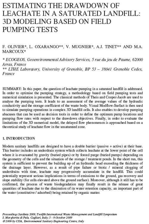 • Acte de colloque : International Waste Management and Landfill Symposium