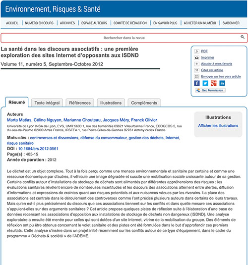 La santé dans les discours associatifs : une première exploration des sites Internet d’opposants aux ISDND